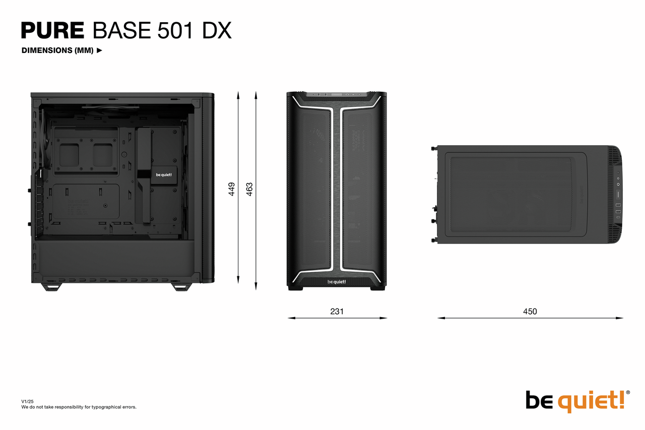 尽管尺寸小巧,但 Pure Base 501 DX Black 为高端显卡和大型散热器提供了足够的空间。前部可轻松安装 3 个风扇或高达 360mm的散热器,顶部可安装 2 个风扇或最大 240mm的散热器。