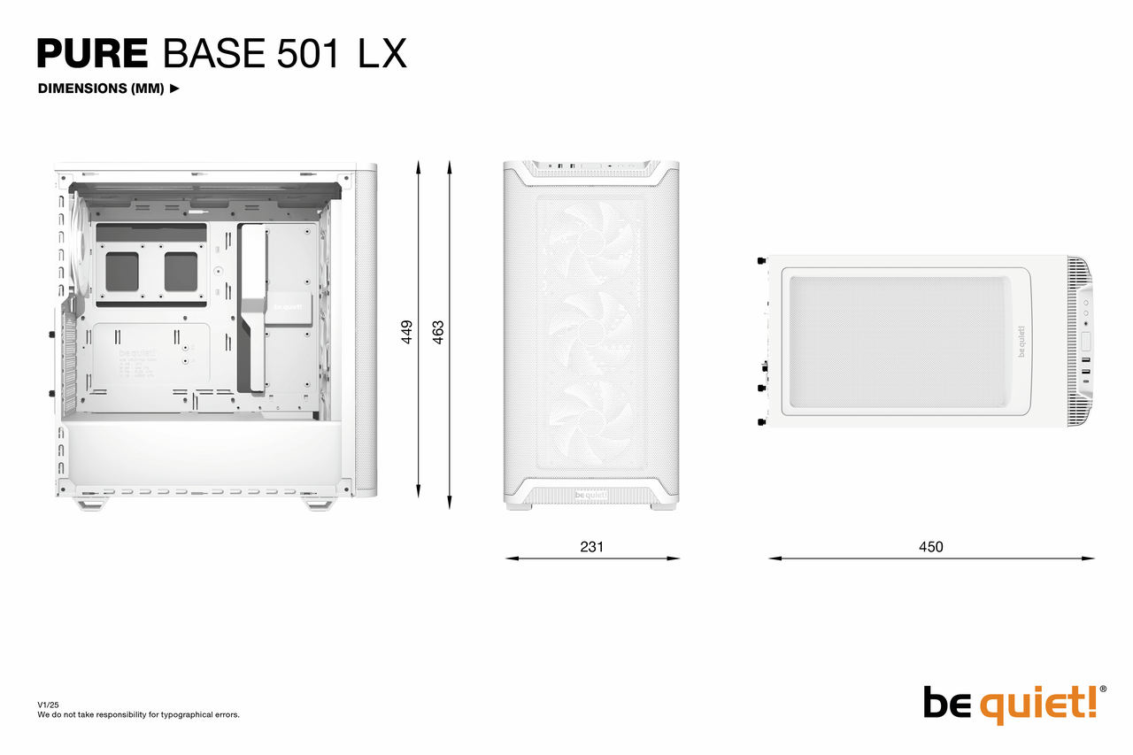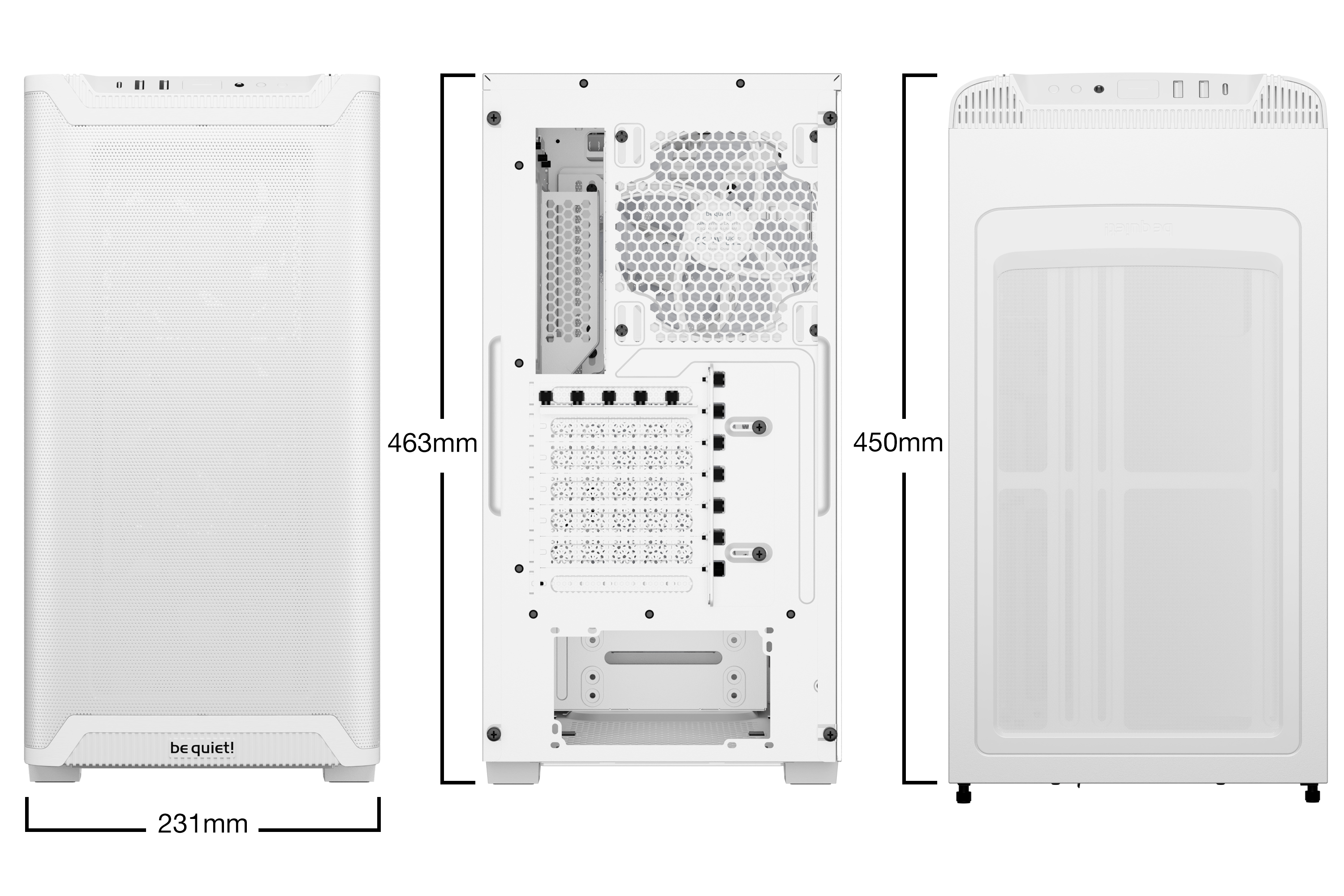 Pure Base 501 LX White 是一款令人印象深刻的多功能 be quiet! ATX 机箱,配有 ARGB 风扇,小尺寸,大气流,适用于任何应用场景。