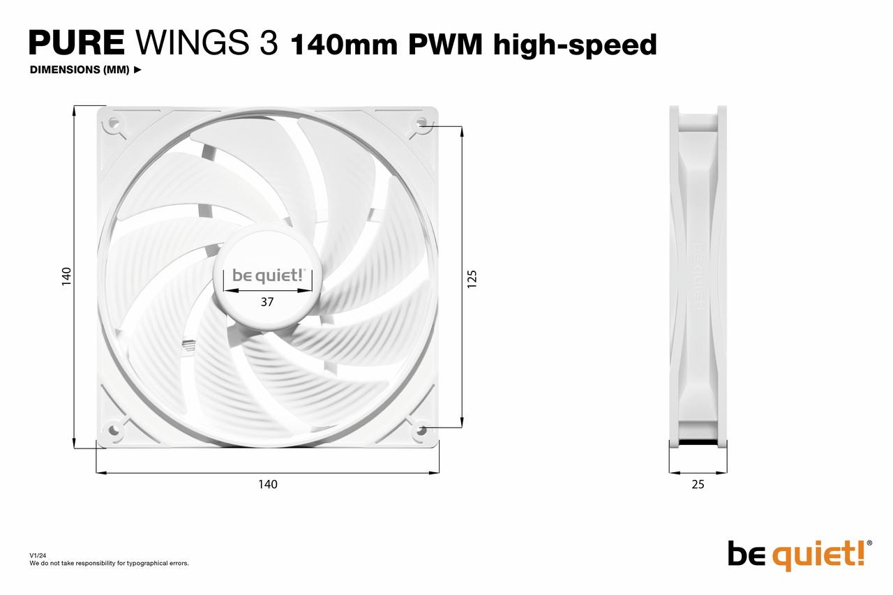 Pure Wings 3 140 mm PWM high-speed White 具有超高性能和先进功能(如可调速闭环马达),是要求苛刻的 PC 配置的完美补充。