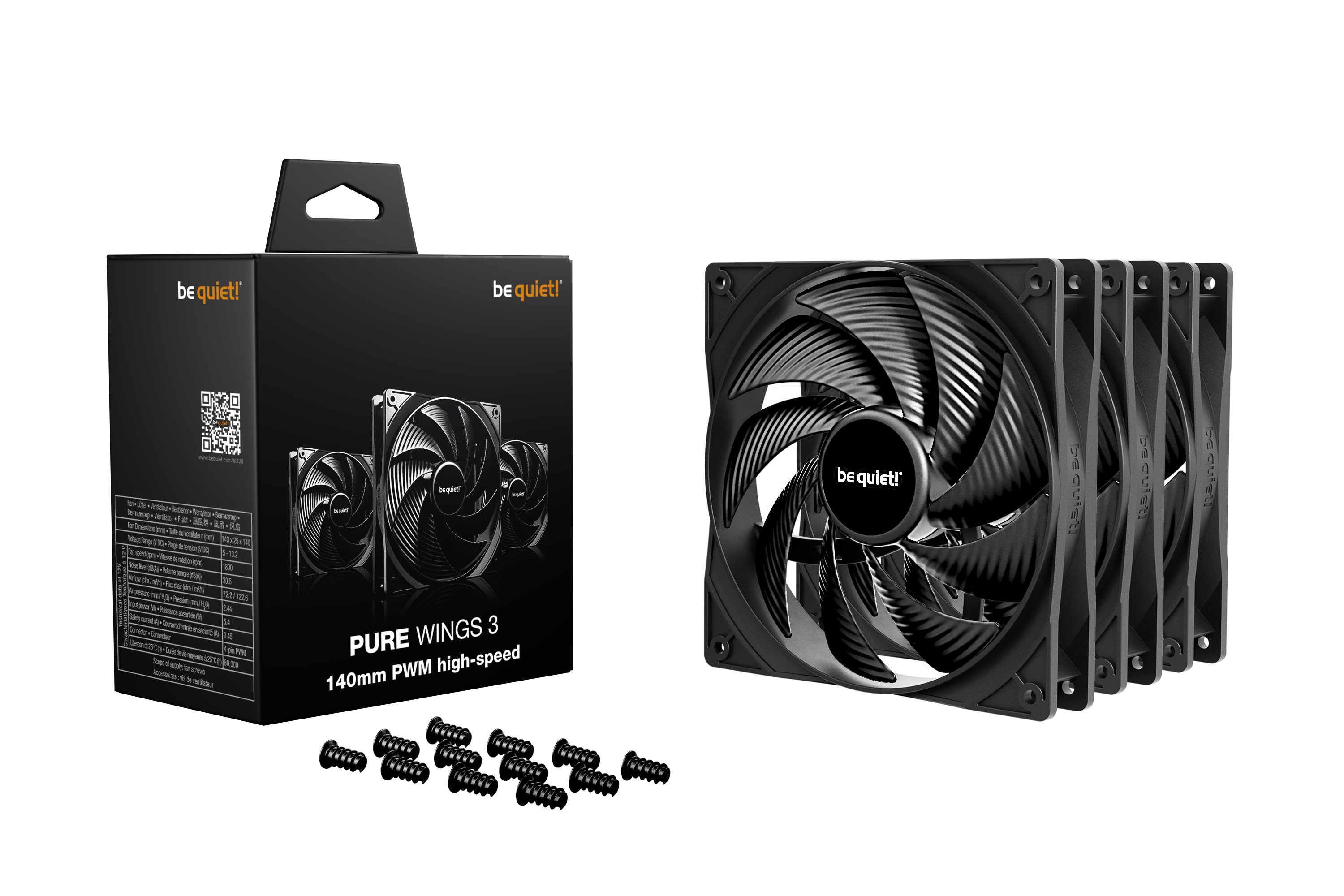 Pure Wings 3 140mm PWM high-speed Triple Pack je vyroben tak, aby vydržel. Díky osvědčené technologii ložiska se spirální drážkou nabízí tento ventilátor průměrnou životnost 80 000 hodin.