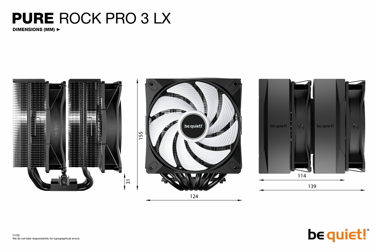 Přestože jde o double-tower vzduchový chladič, kompaktní offsetový design chladiče Pure Rock Pro 3 LX značně zvyšuje kompatibilitu s RAM a VRM chladiči. Výšku předního ventilátoru je možné upravit, pokud je to třeba.