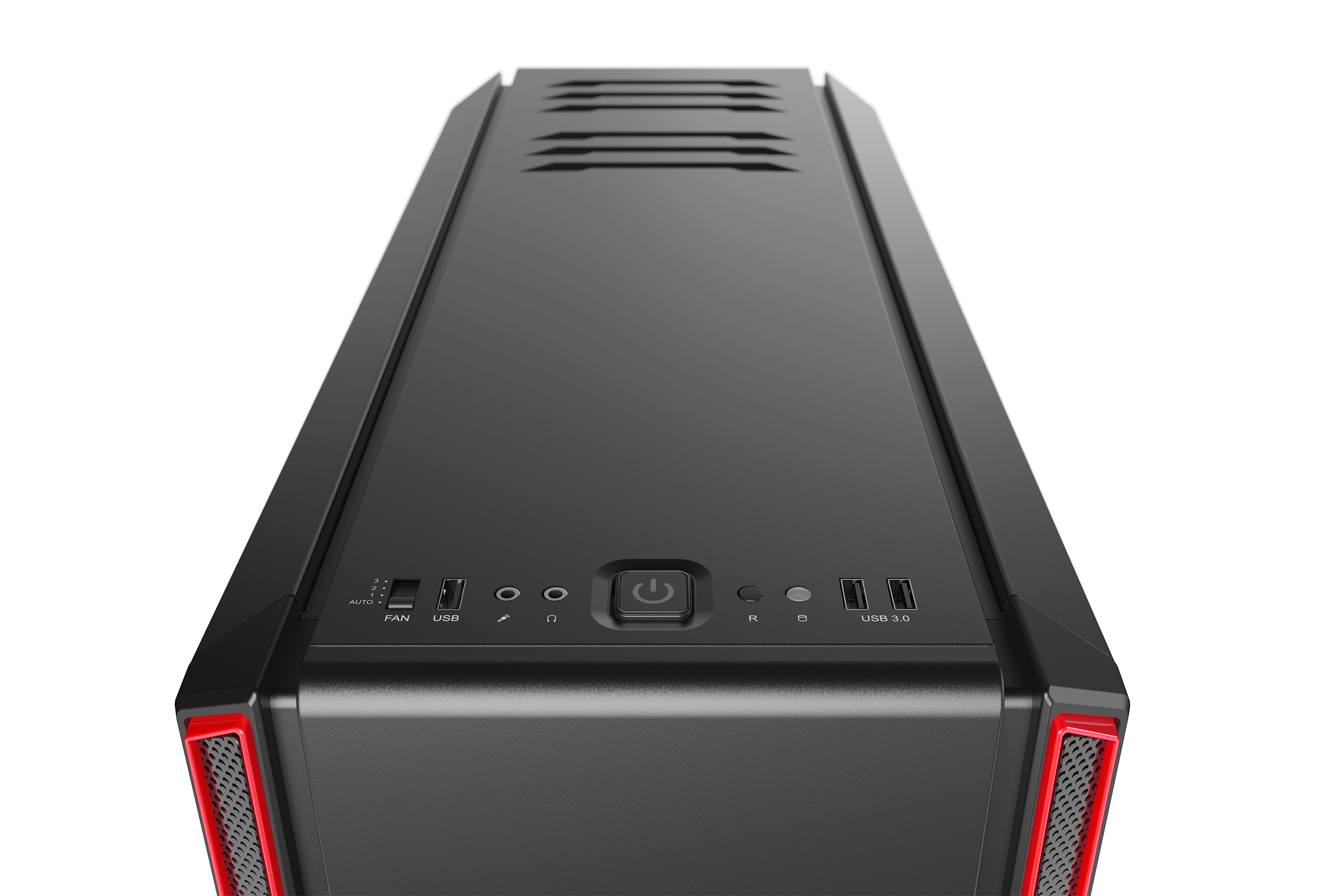 Das elegante, verglaste Seitenfenster bietet einen perfekten Einblick auf die Komponenten in Ihrem PC. Das Seitenfenster ist mit getöntem Temperglas ausgestattet und verfügt über geschwärzte Seitenrahmen.