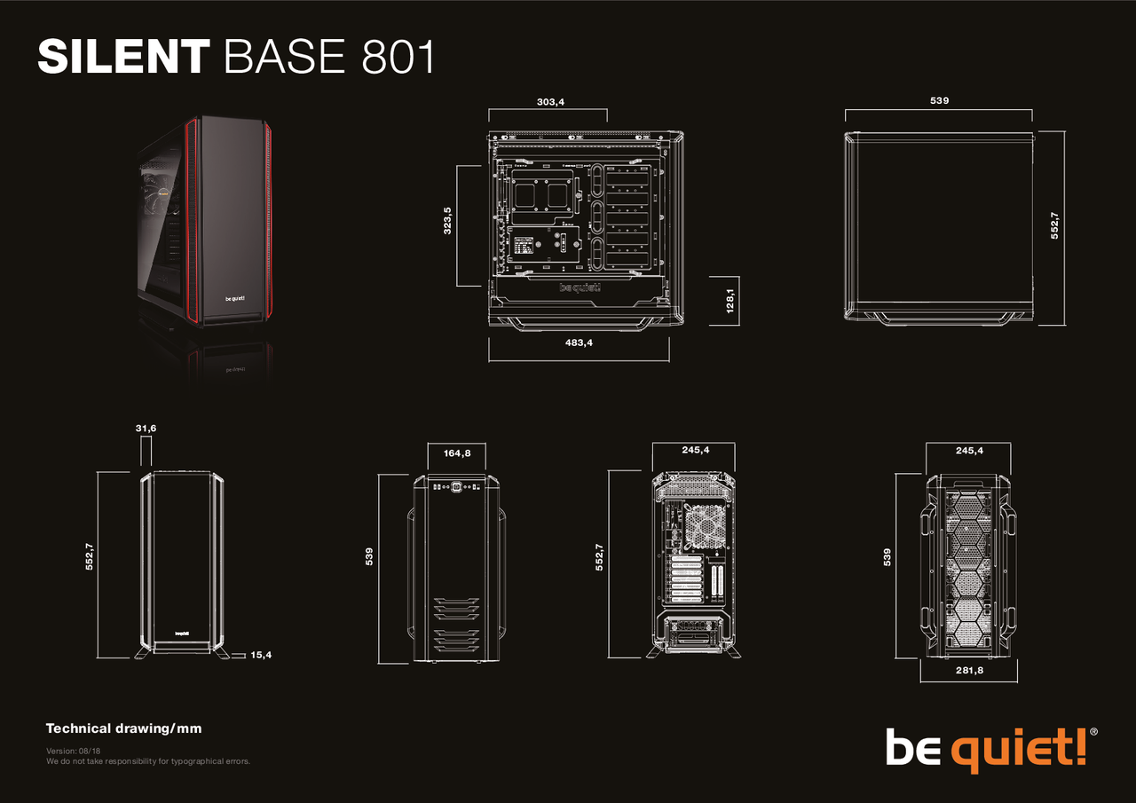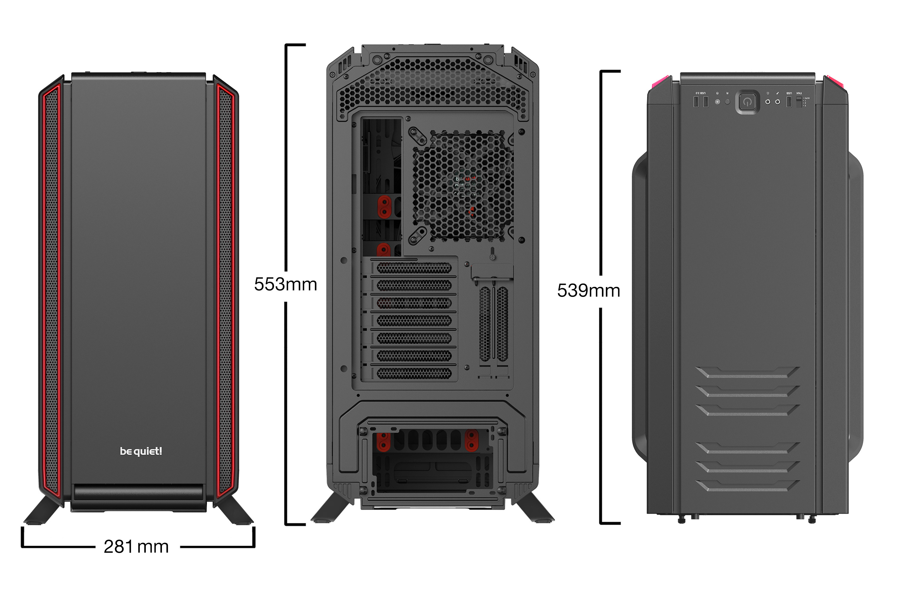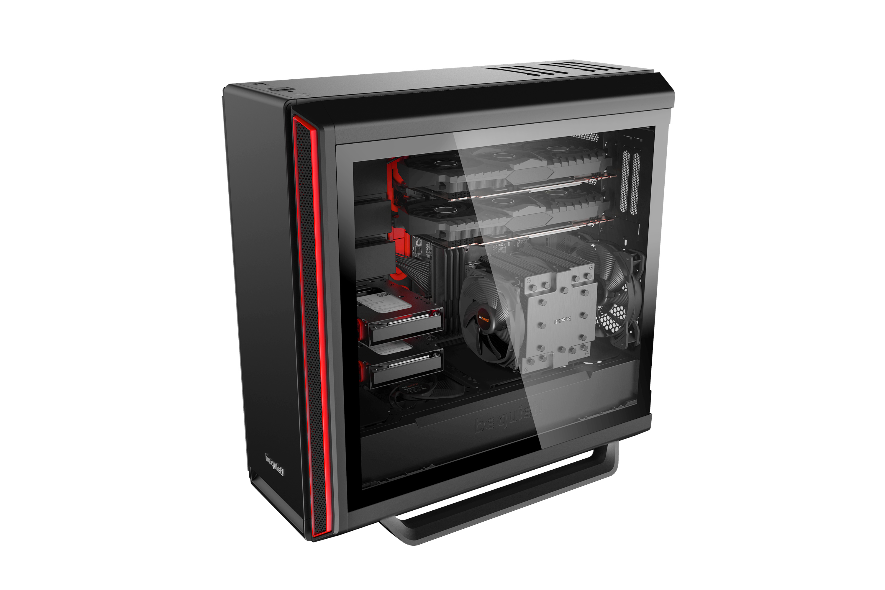 Trotz seines kompakten Designs bietet das Silent Base 801 Window einen großzügigen Innenraum und Aussparungen, sodass sogar ein E-ATX Mainboard verbaut werden kann. Die durchdachte Anordnung von Komponenten erlaubt es auch mehreren Grafikkarten und großen Kühlern genügend Platz zu finden.
