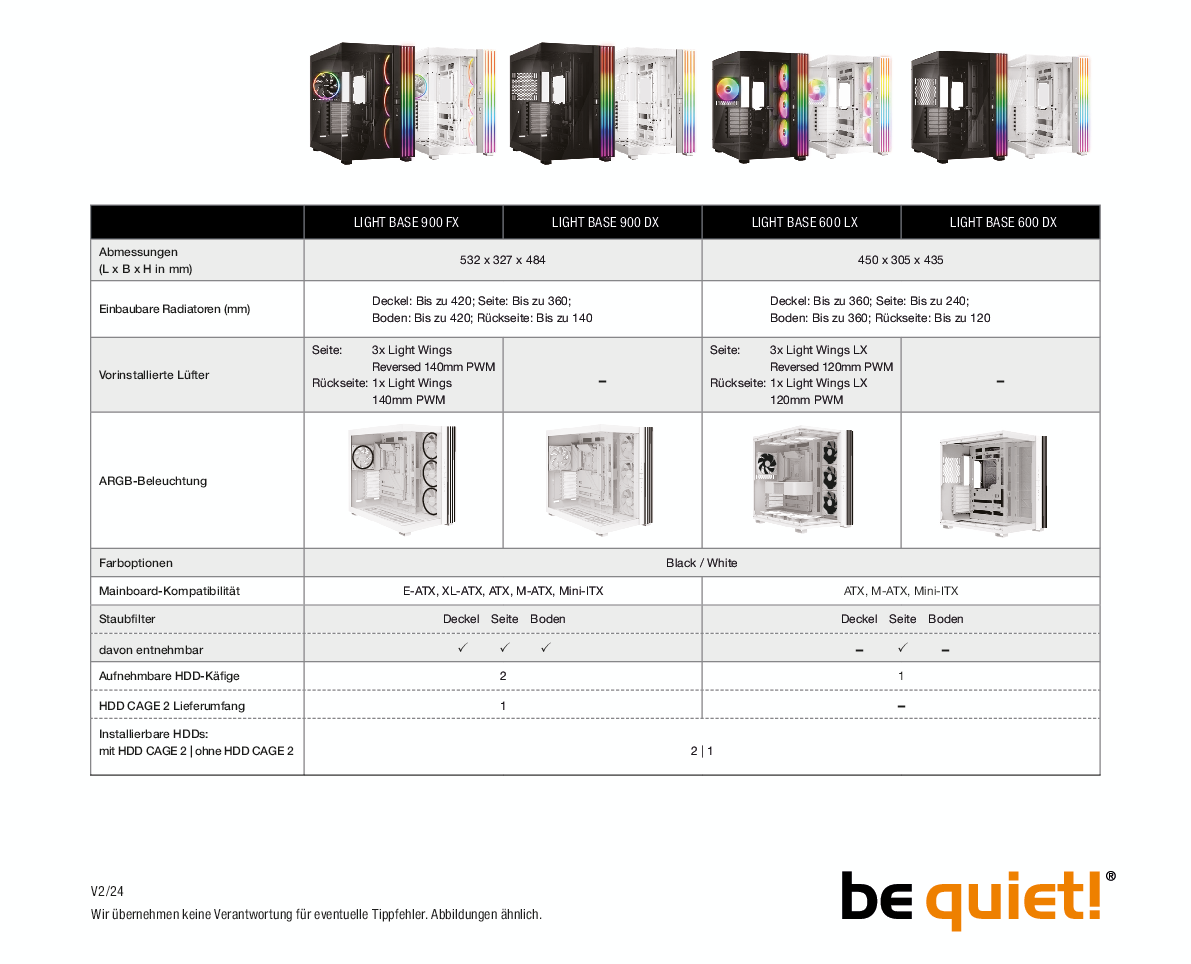 | Lüfter Rückseite | 1x Light Wings 140mm PWM White |