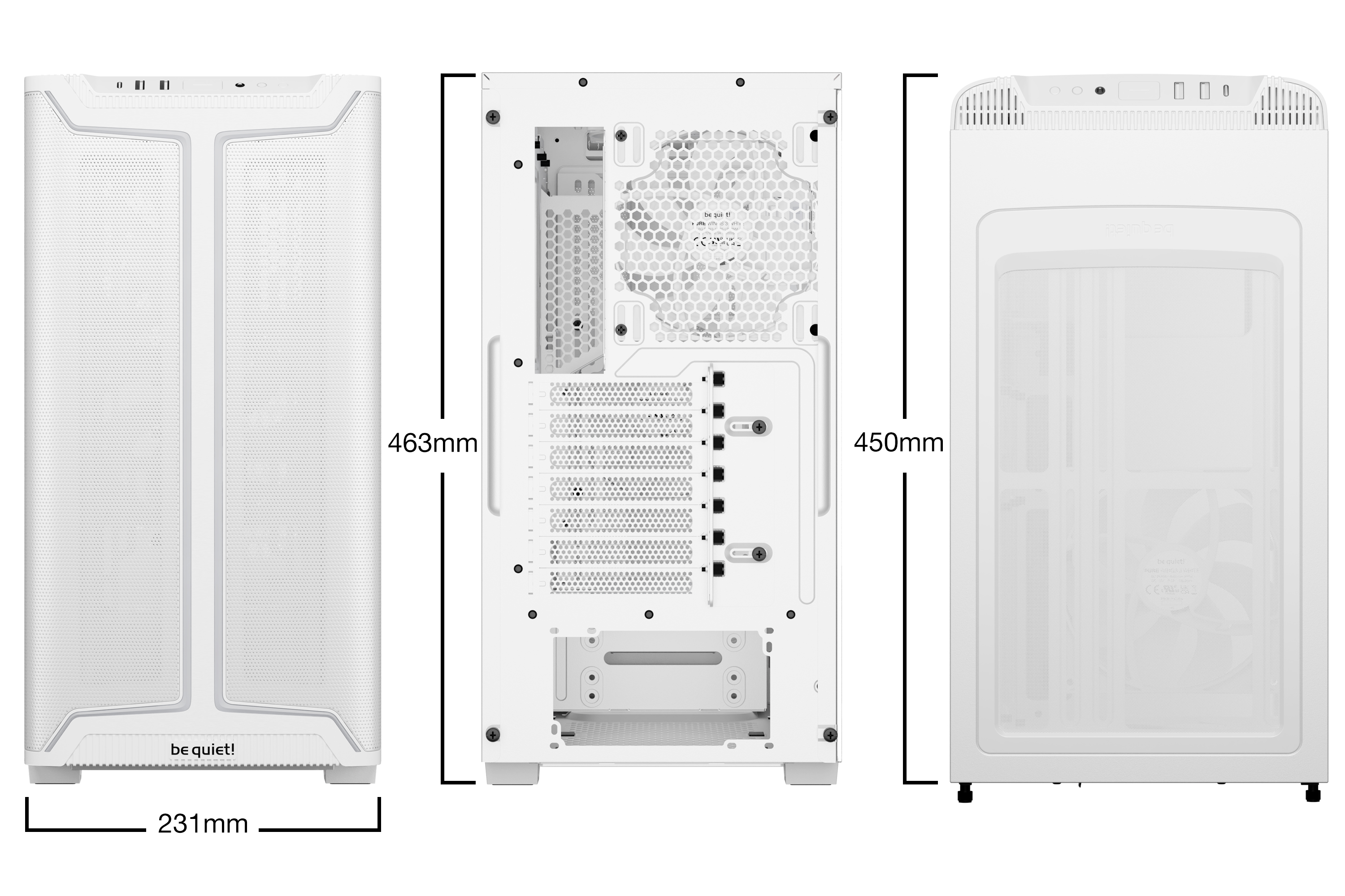 Pure Base 501 DX White ist ein beeindruckend beleuchtetes be quiet! ATX-Gehäuse mit kompakten Abmessungen und hohem Airflow für jede Anwendung.