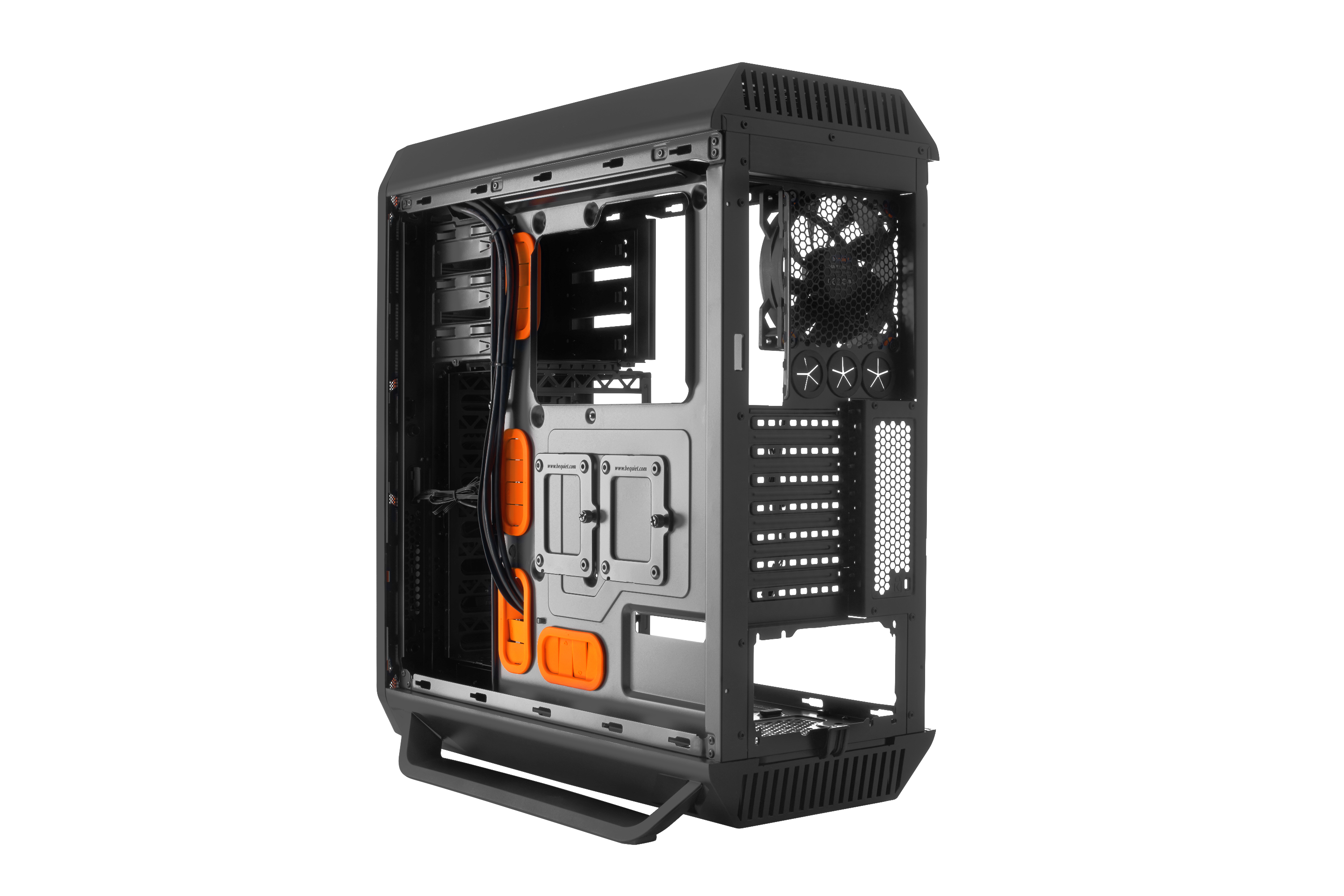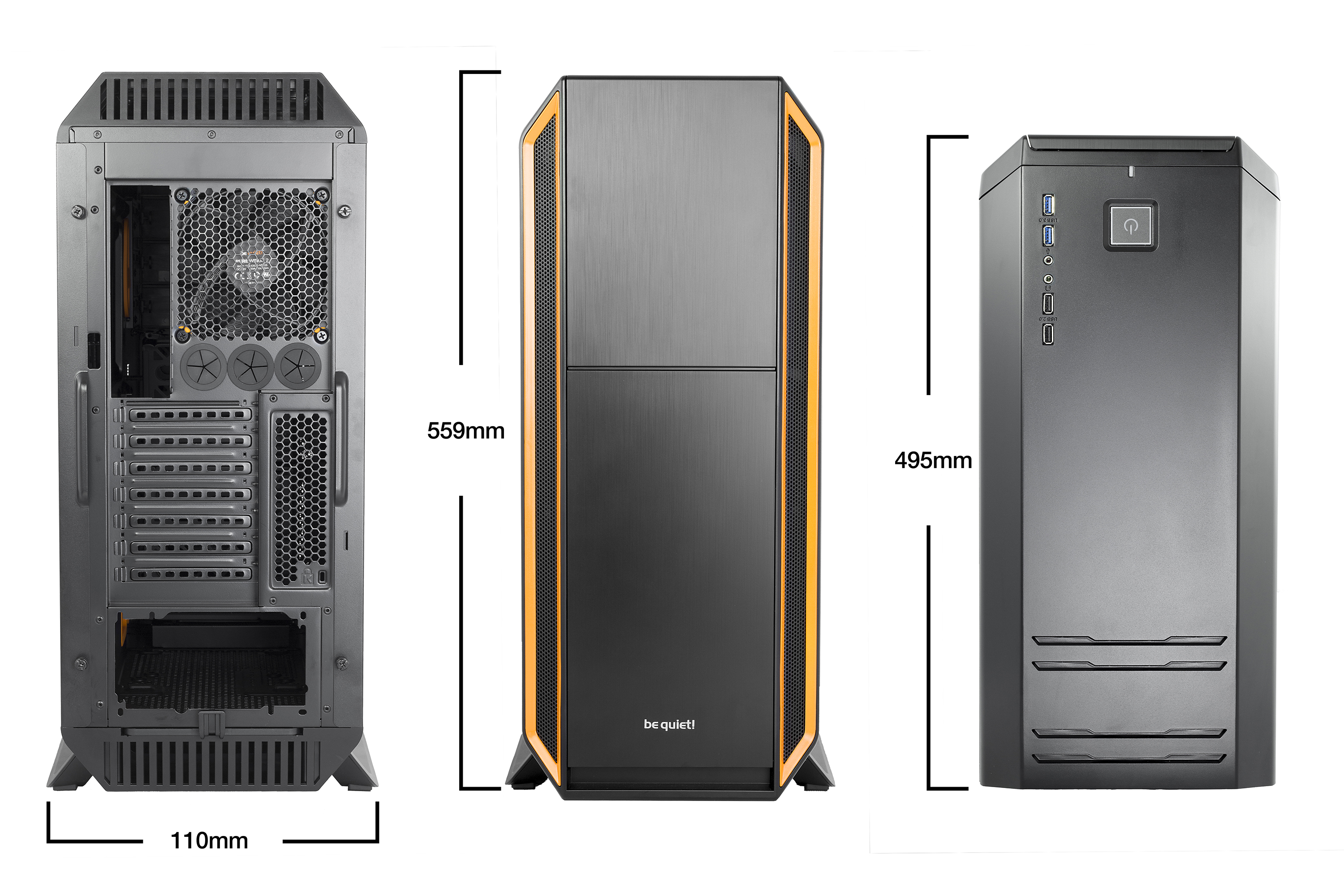 Die innovative Bauweise und drei vorinstallierte Pure Wings 2 Lüfter gewährleisten eine perfekte Systemkühlung und Luftzirkulation. Zahlreiche geräuschdämmende Features, wie z.B. das doppelverglaste Seitenpanelfenster, ermöglichen den für be quiet! gewohnten, absolut leisen Betrieb. Die werkzeugfreie Montage sowie das großzügige Platzangebot für Hardware und Kabelmanagement sorgen für ein hohes Maß an Komfort und Benutzerfreundlichkeit.
