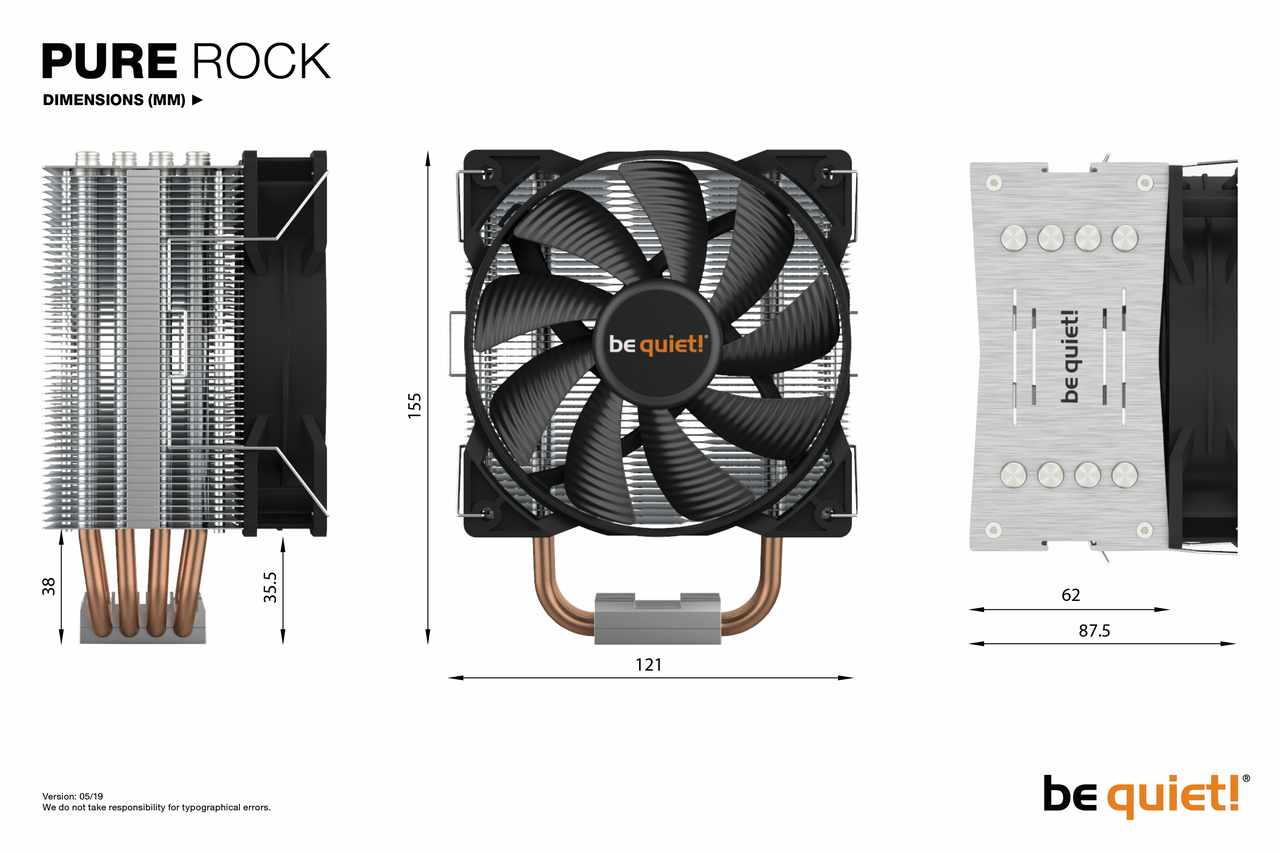 Durch sein kompaktes und platzsparendes Design ist der Pure Rock passend für fast jede Konfiguration und eine ganze Reihe verschiedener Installationsvarianten. Dank seines komfortablen Montage-Systems lässt er sich vollständig von oben auf das Mainboard verbauen.