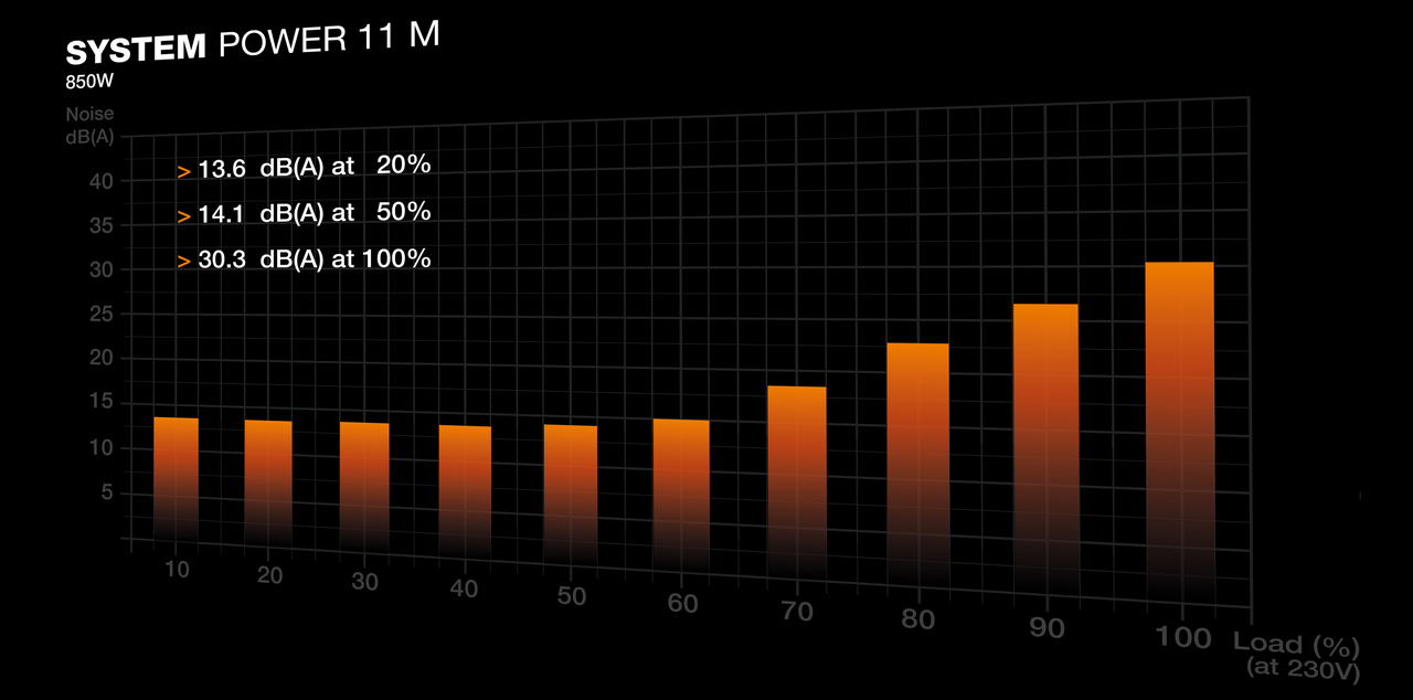 System Power 11 M 850W erzielt eine Effizienz von 91,2% und ist 80 PLUS Gold zertifiziert. Und das lohnt sich: Ein geringer Energieverbrauch führt zu niedrigen Kosten, einer besseren Kühlung und leiserem Betrieb. Ob für ein sehr leises System oder einen Gaming-PC: System Power 11 M 850W ist die beste Wahl für preisbewusste Anwender!