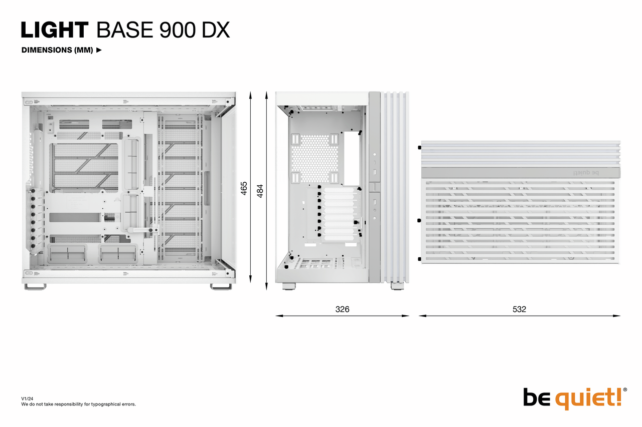 Light Base 900 DX White features a flexible VGA holder that subtly prevents your GPU from sagging. The best part: This holder works in any orientation and with a horizontally or vertically installed graphics card. The result is a clean look even if you use big and heavy graphics cards.