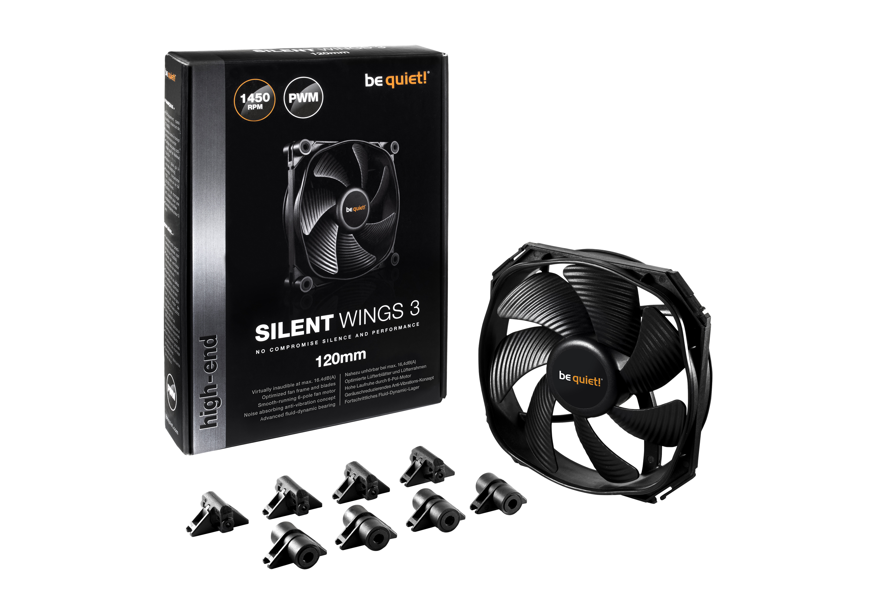be quiet! Silent Wings 3 120mm PWM stands for state-of-the-art technology, virtually inaudible operation and superior cooling. It meets all the requirements to be a perfect choice for heat sinks, PC cases and radiators.
