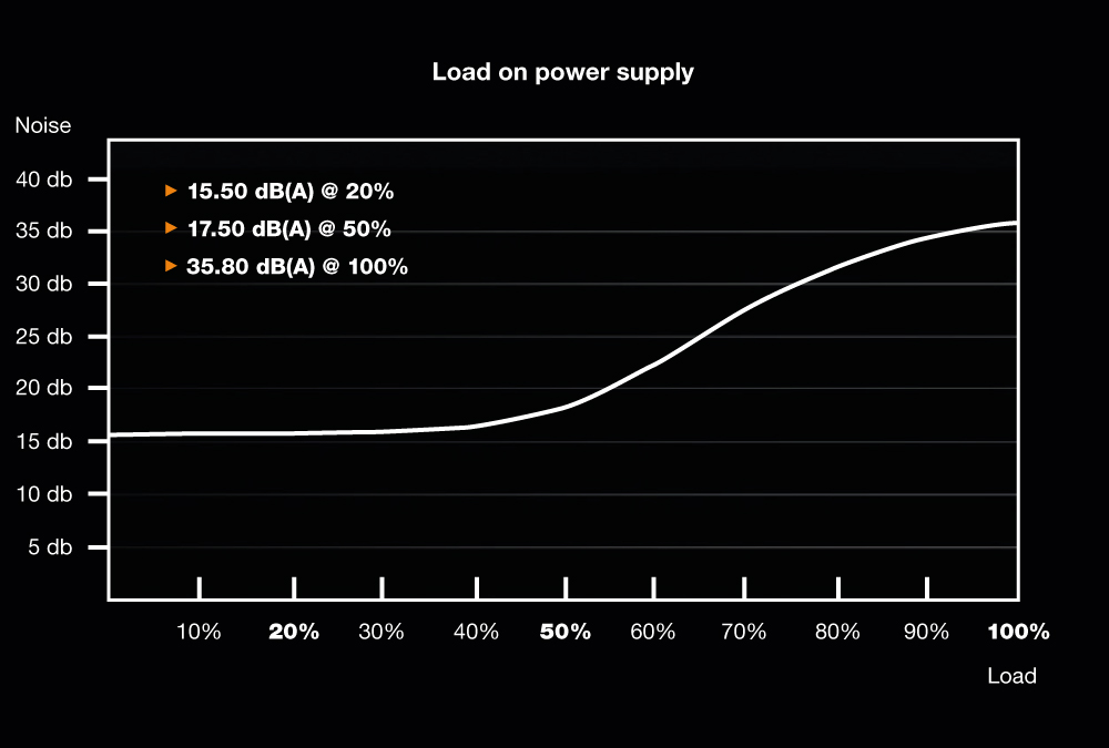 Up to three case fans can be temperature-controlled by the PSU, resulting in an optimized and quiet system. The “cool-off” feature continues to run the fans for an additional three minutes after a system shutdown, protecting valuable components at their time of maximum heat stress.