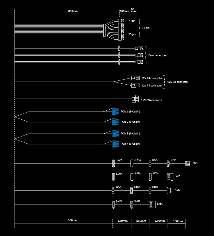 | PCI-e 6+2-pin (GPU) | 4 |