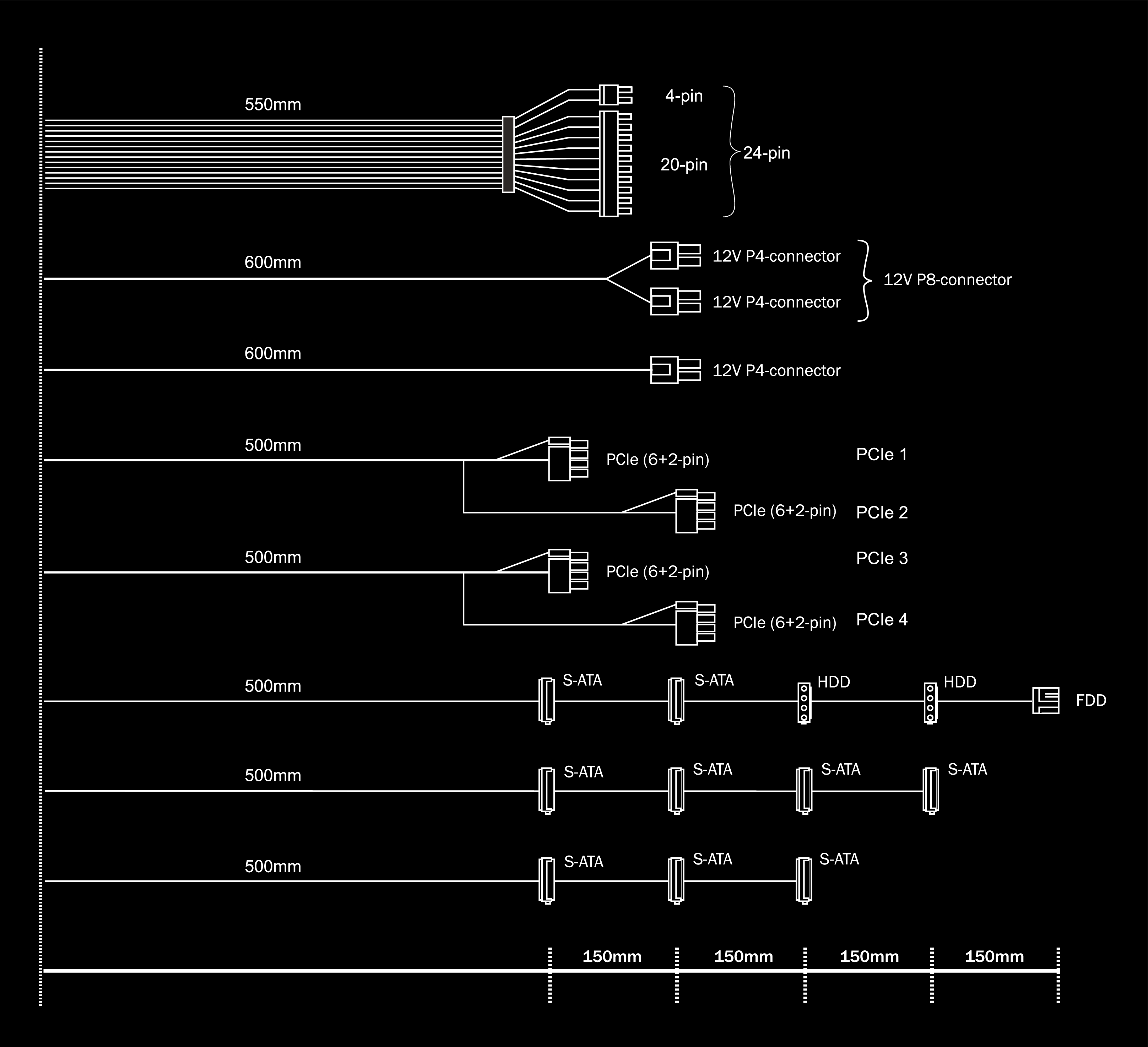 El uso de LLC y Synchronous Rectifier (SR) ofrece un funcionamiento muy estable y una regulación mejorada del voltaje. La fuente de alimentación está equipada con conversión de CC a CC para una regulación aún más ajustada del voltaje incluso bajo condiciones de alta carga cruzada. Esto garantiza un funcionamiento seguro para la próxima generación de procesadores y tarjetas gráficas.