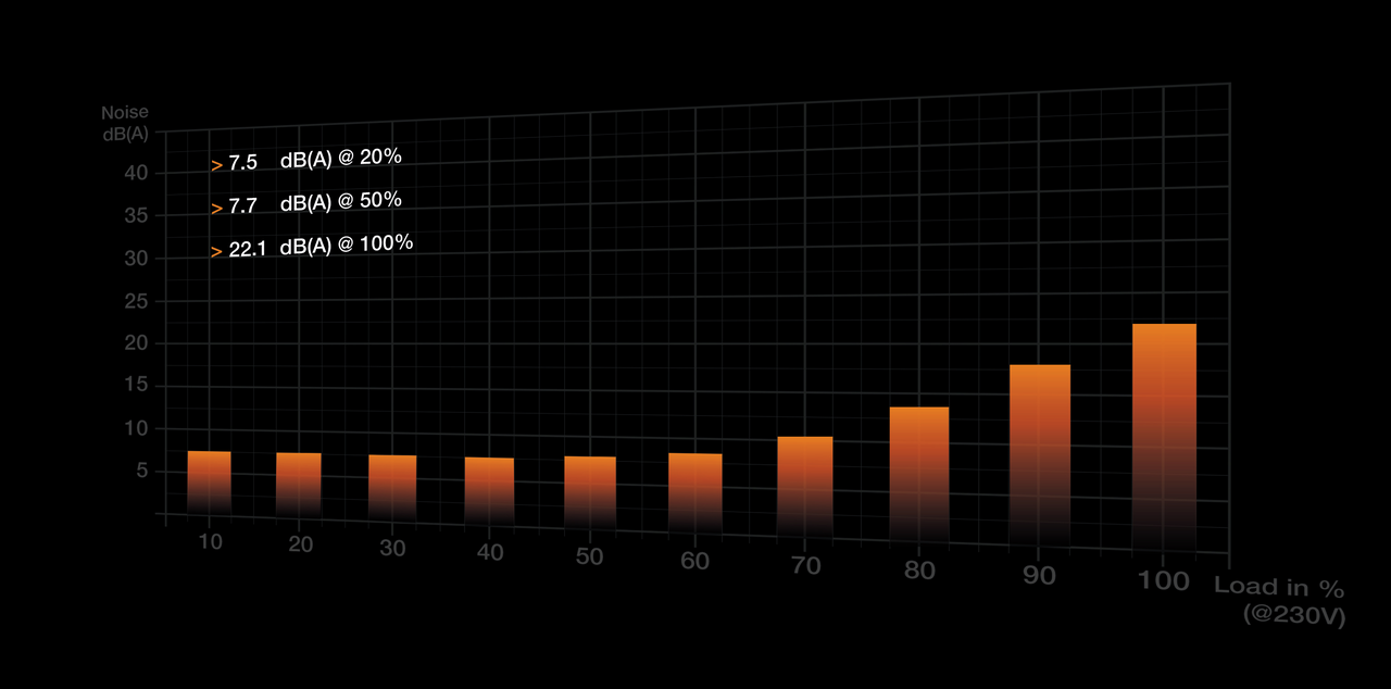 El ventilador Silent Wings de gama alta ofrece el mejor flujo de aire de su clase y, sin embargo, produce muy poco ruido. Esto se debe a su exclusivo diseño optimizado de las aspas del ventilador junto con un avanzado cojinete fluidodinámico y un motor de ventilador de 6 polos que elimina en gran medida el ruido de funcionamiento, tiene una vida útil superlarga y un consumo de energía mínimo.