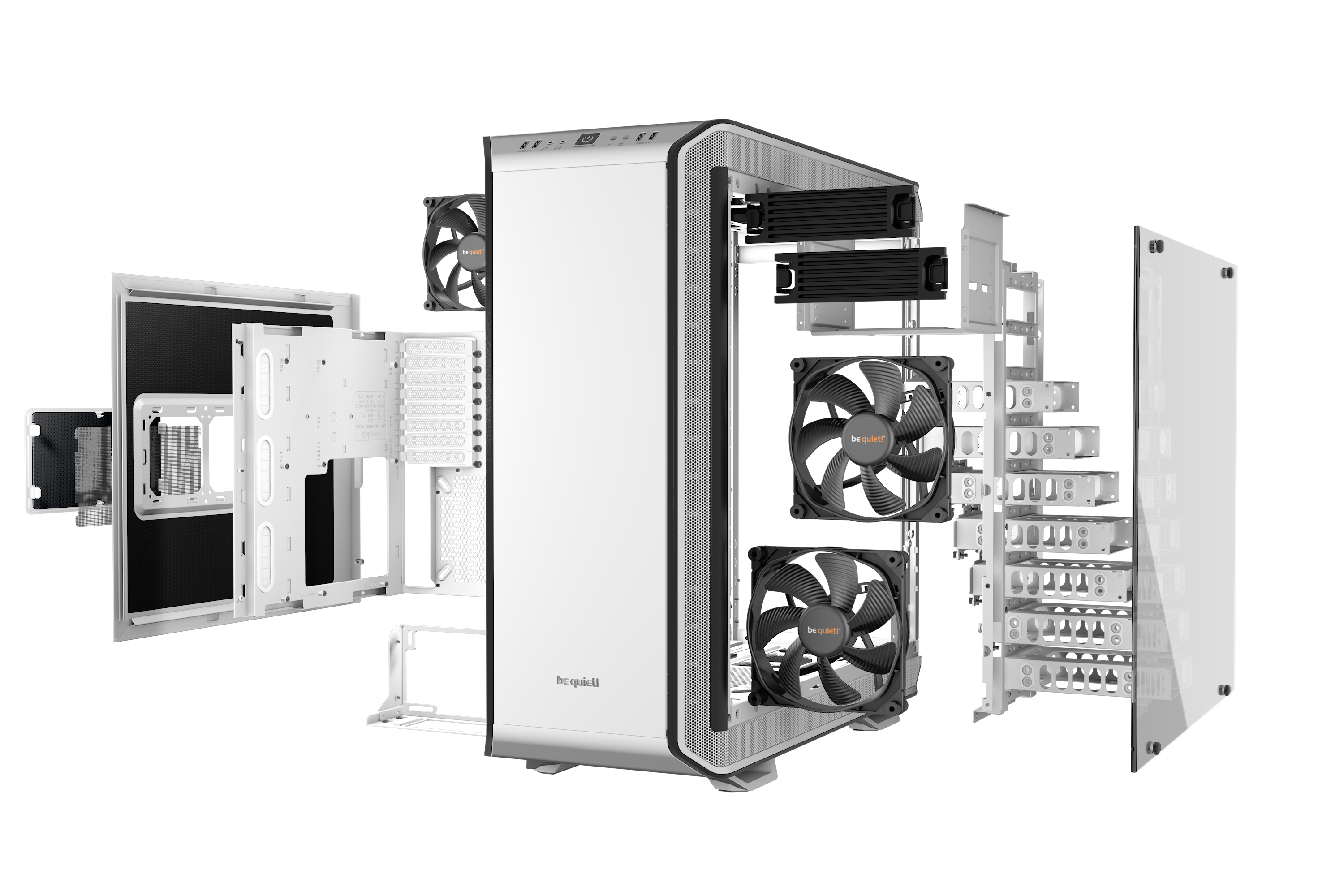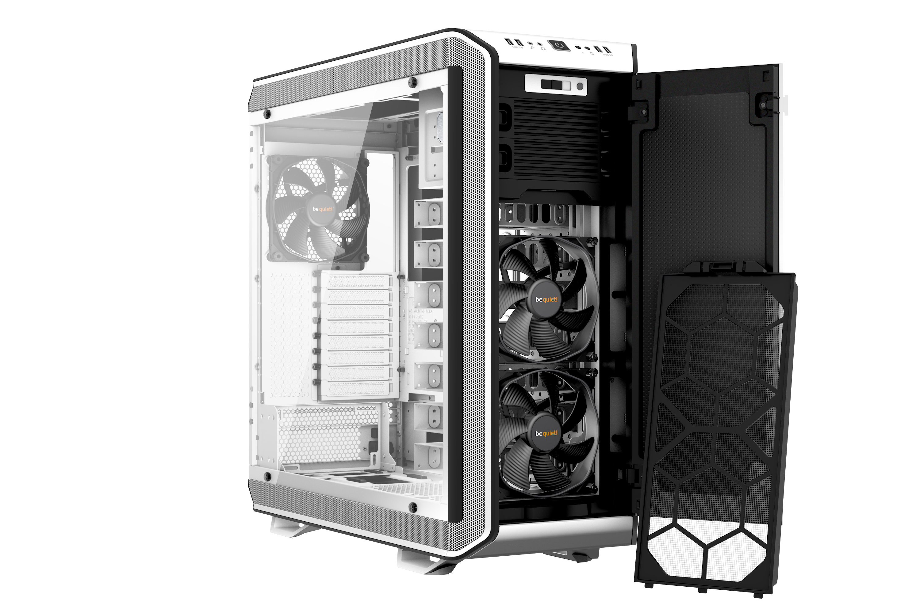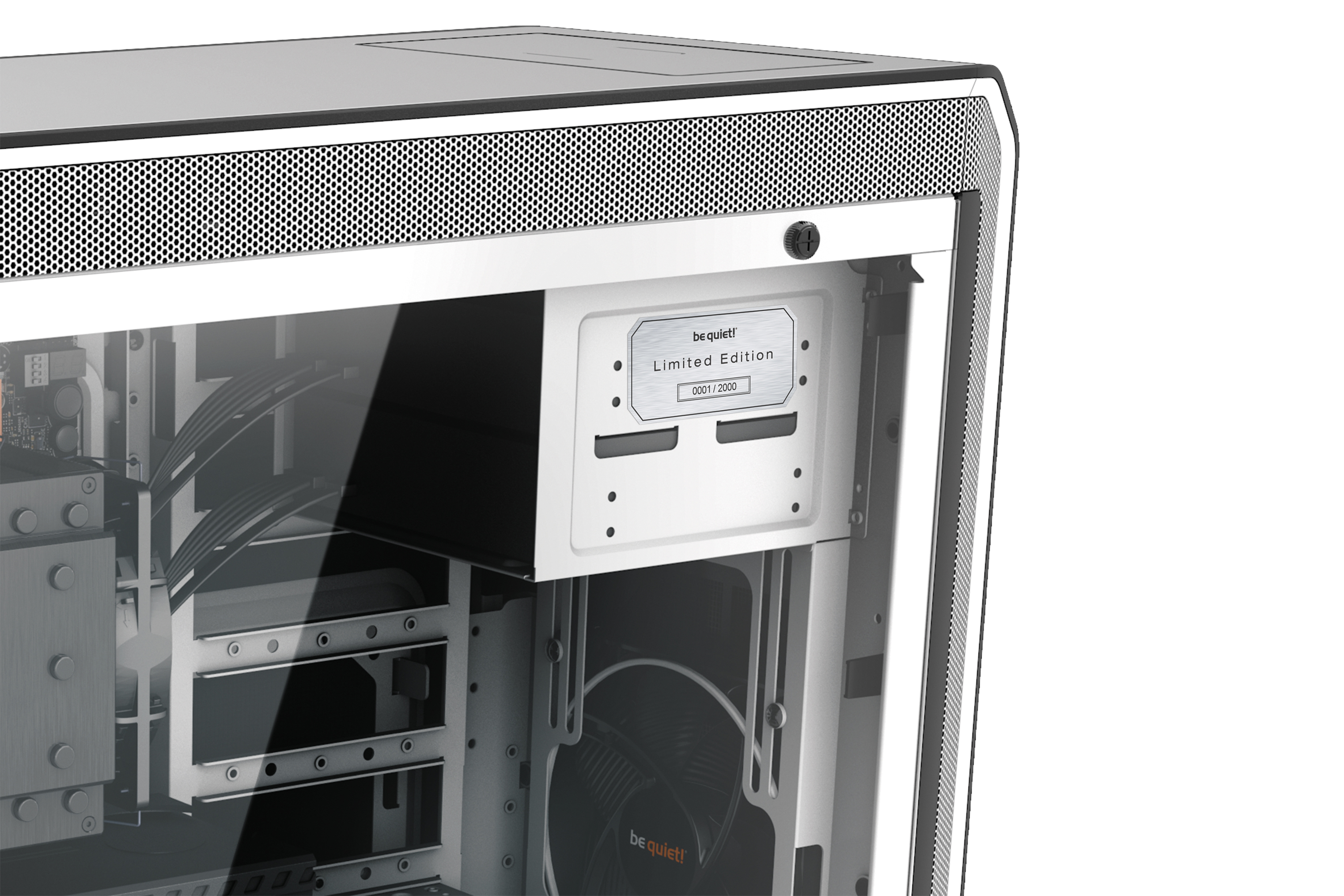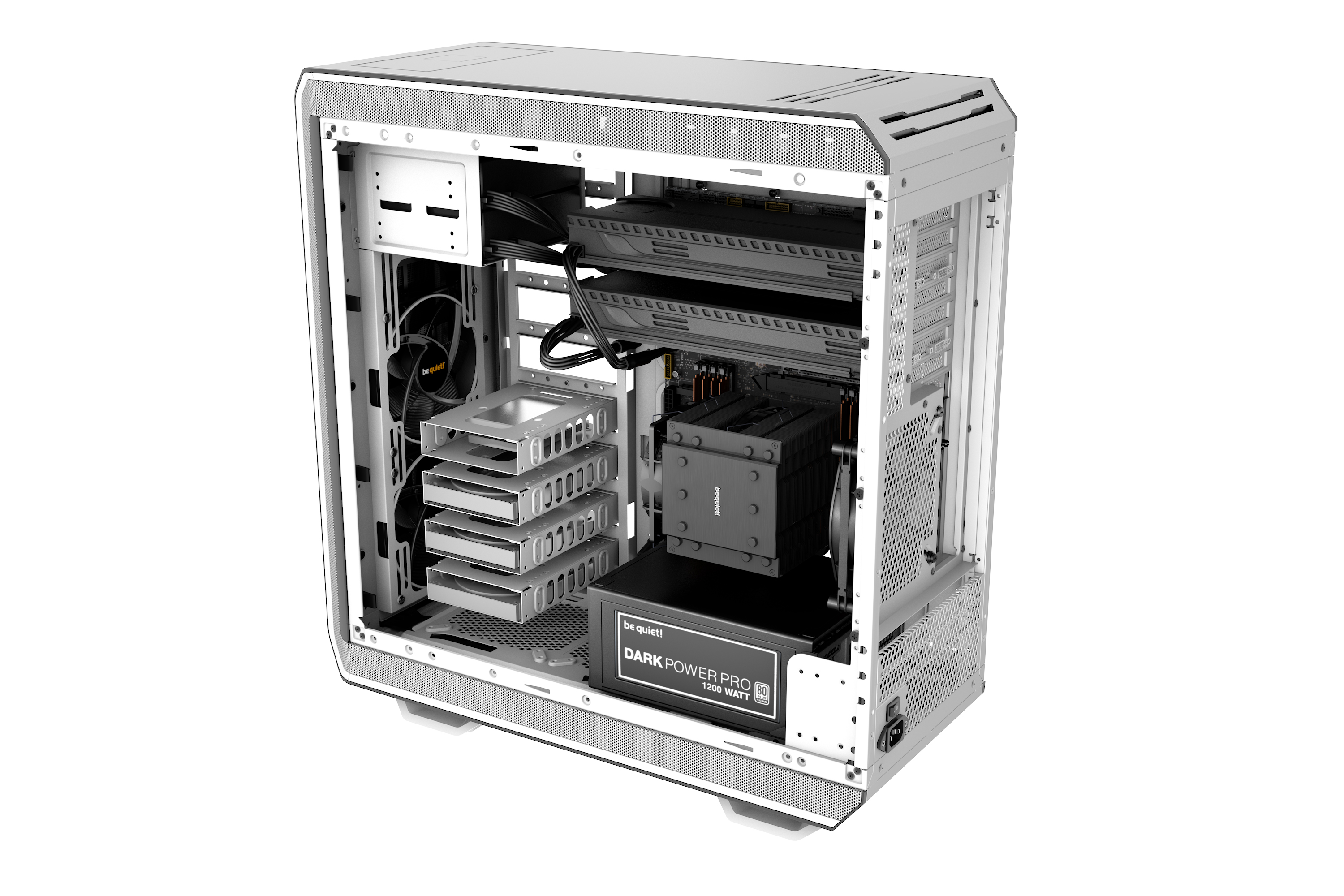 Disponible pour une courte période: le Dark Base Pro 900 „White Edition“, fabriqué à 2 000 pièces seulement, offer une flexibilité inégalée, un refroidissement optimal et silencieux.