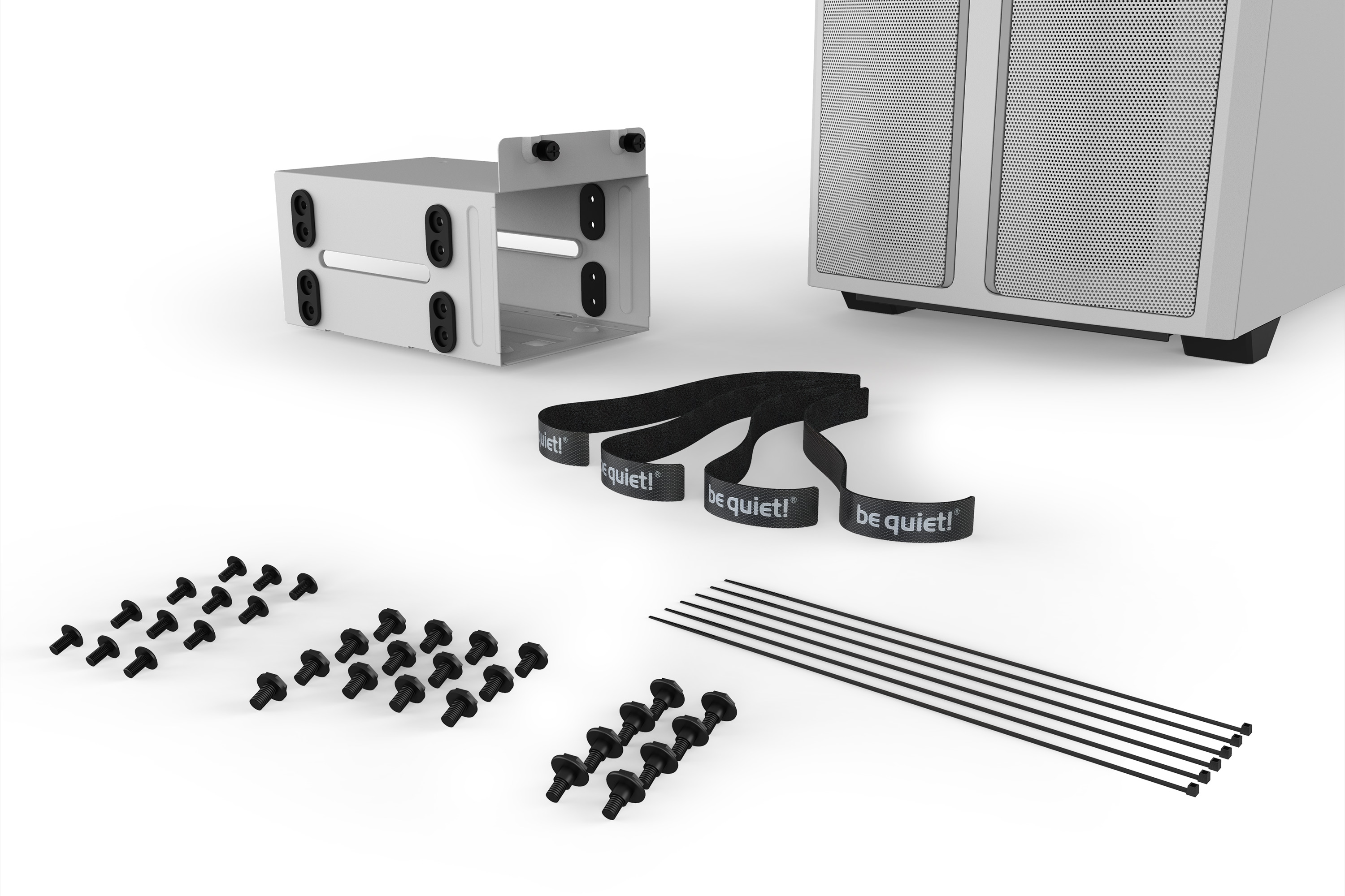 Le cache alimentation couvre parfaitement les câbles et le bloc d'alimentation. Il contient une double rack HDD avec supports découplés qui réduit les vibrations et contribue à maximiser le silence; il peut également être repositionné pour installer des radiateurs jusqu'à 360 mm à l'avant. En utilisant le support du bloc d'alimentation, l'unité d'alimentation peut être facilement installée par l'arrière.