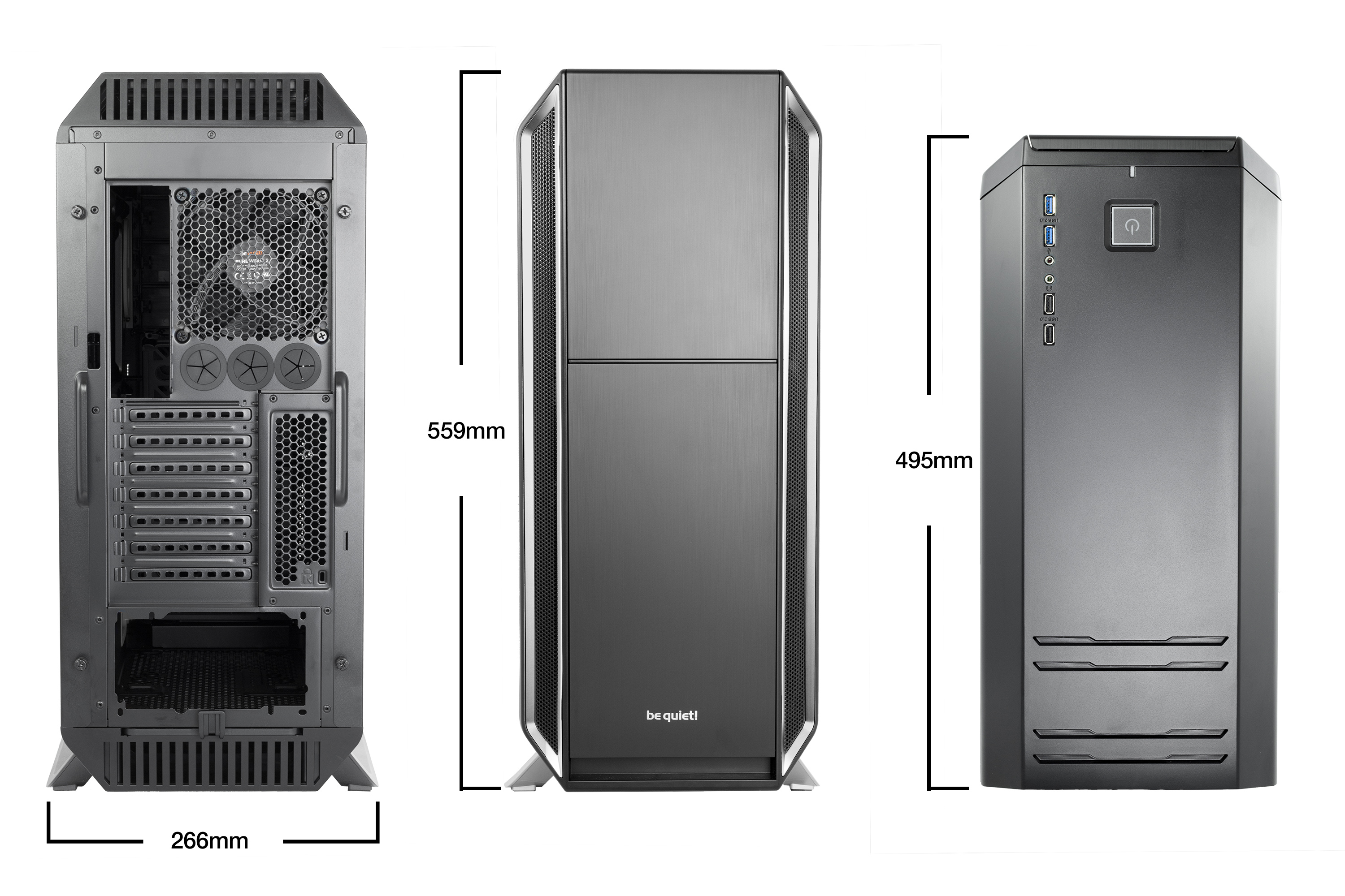 Une conception innovante associée à l’intégration de Pure Wings 2, garantissent une excellente ventilation. Les nombreuses fonctionnalités antibruit, dont le double vitrage du panneau transparent, contribuent à l’acoustique irréprochable du boîtier. Avec son système de montage sans contrainte et sa gestion des câbles intelligemment étudiée, le boîtier offre un confort de montage et une ergonomie réellement appréciables.