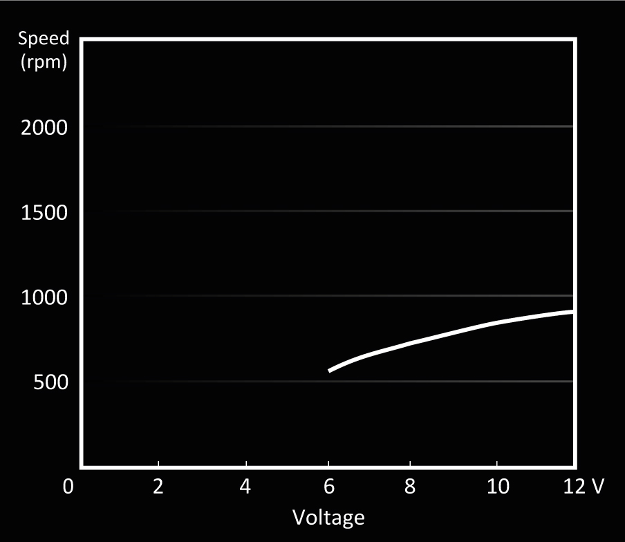 | Vitesse de rotation à 100% PWM / 12V (rpm) | 900 |