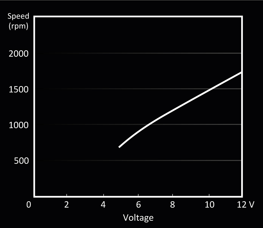 | Vitesse de rotation à 100% PWM / 12V (rpm) | 1,800 |