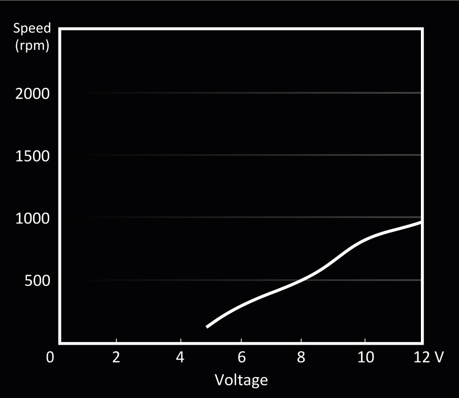 | Vitesse de rotation à 100% PWM / 12V (rpm) | 800 |