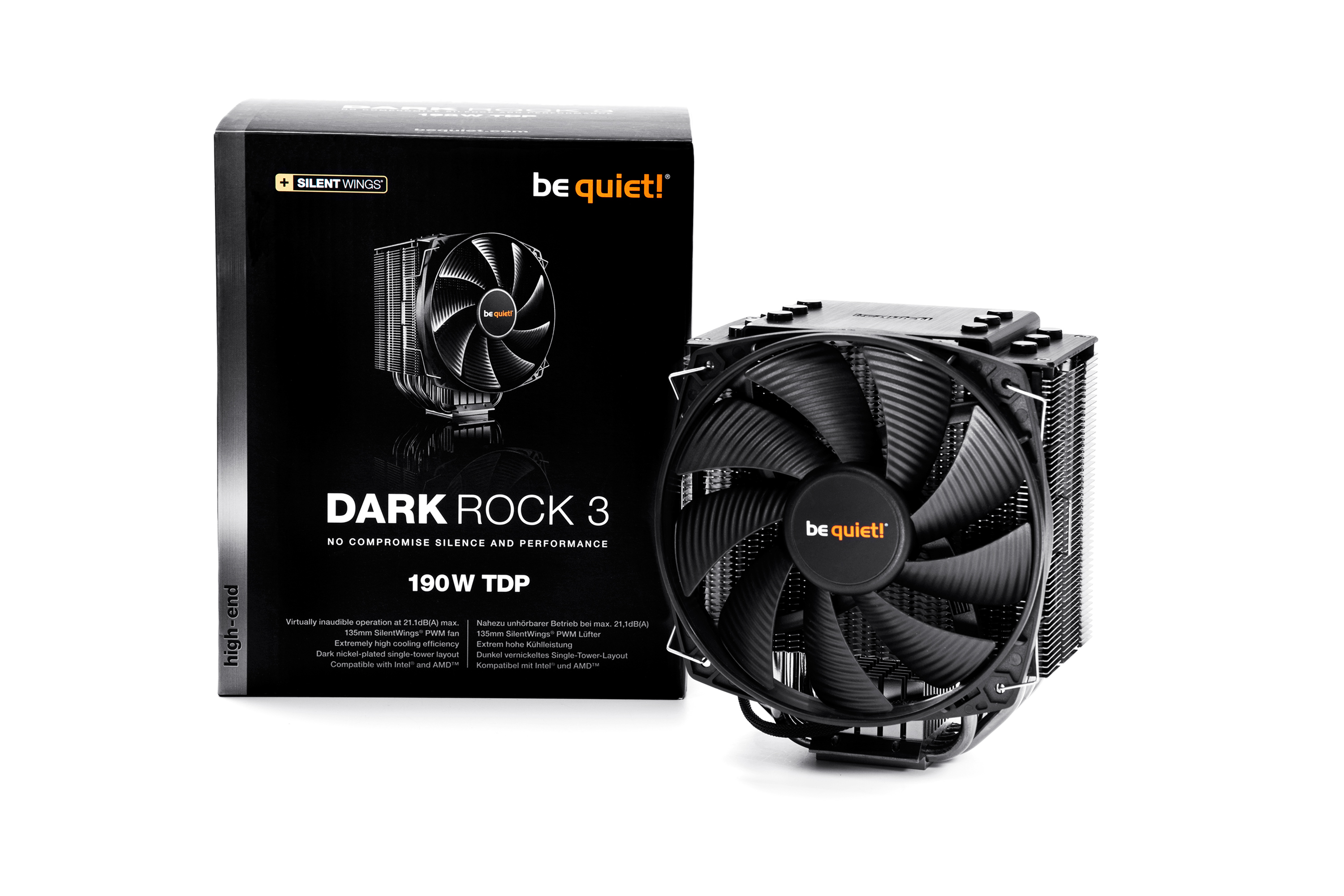 Les Dark Rock 3 offrent la meilleure alliance silence/performance du marché pour une fiabilité irréprochable. Leur capacité de refroidissement, encore améliorée (190 W TDP) et leur fonctionnement parfaitement silencieux (seulement 21.1dB(A) à vitesse maximale), sont le gage d’un équilibre parfait entre performance et silence, sans aucun compromis.