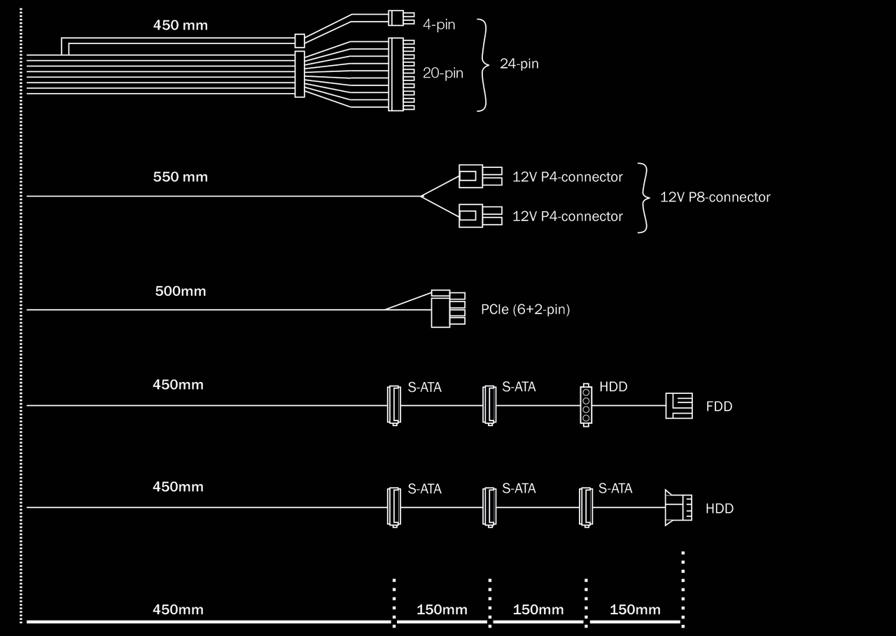 La Pure Power 11 350 W est équipée de cables gainés haute qualities implifiant l'installation des composants, augment ant le débitd'air et améliorant le refroidissement. Le cable tout-en-un disposed 'un connecteur pratique pour faciliter la connexion au disque dur.