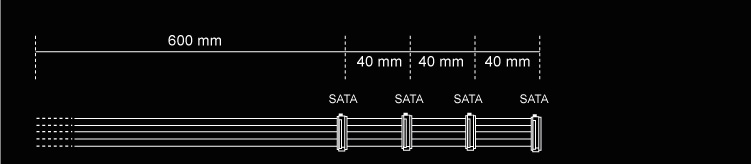 A matt fekete, harisnyázott extra hosszú 4x S-ATA Power Cable látványa és tapintása is pazar. Az egyedi harisnyázás maximális rugalmasságot biztosít. Igényes környezetbe, hosszú távra tervezve.