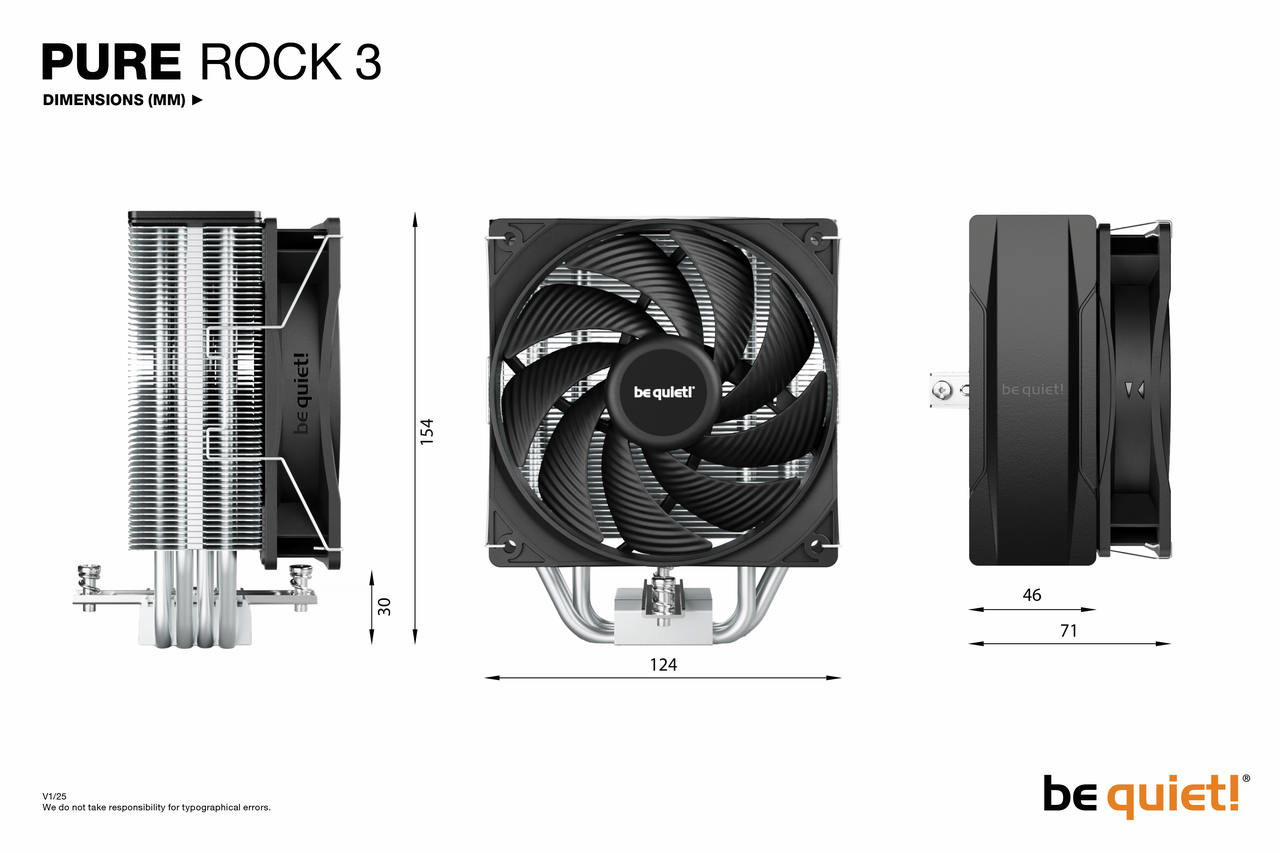 A Pure Rock 3 Silver felszerelése egyszerűbb, mint valaha. A kényelmes, előre beépített rögzítőhídnak és csavaroknak, illetve a stabil, mégis kíméletes rögzítési módnak köszönhetően a hűtő felszerelése gyerekjáték. Az AMD AM5-ös foglalatú processzort használók számára előnyös az eltolt rögzítés, mert így a hőcsöveket a processzor forró pontjai fölé pozicionálhatják.