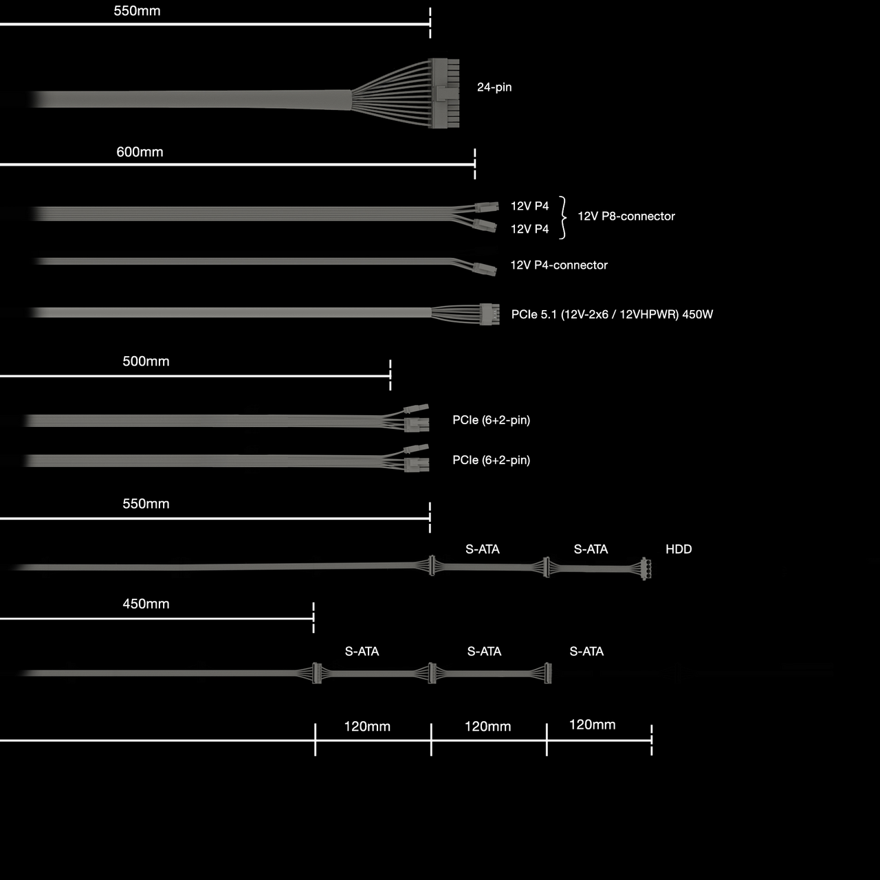 | Lapos profilú kábel | P4+4, P4, PCIe, drives |