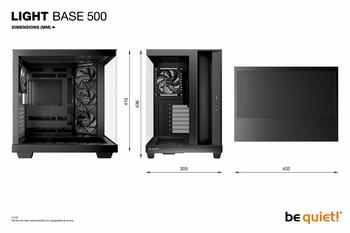 Light Base 500 może wydawać się kompaktowa, ale ma wystarczająco dużo miejsca na chłodnicę 360 mm, płytę główną ATX i karty graficzne o długości do 400 mm. Inteligentna konstrukcja wspornika na dyski oferuje gniazda na 2 dyski HDD i 2 dyski SSD jednocześnie, nie ograniczając miejsca na zarządzanie przewodami za tacką płyty głównej.