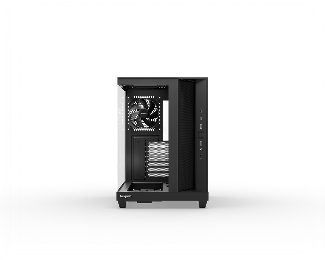 Light Base 500 posiada 4 preinstalowane wentylatory Pure Wings 3. Tylny wentylator wyciągowy to Pure Wings 3 120mm PWM, a wentylatory wlotowe z boku to Pure Wings 3 120mm PWM z odwróconymi łopatkami. Wszystkie wentylatory są zoptymalizowane pod kątem maksymalnego przepływu powietrza, jednocześnie redukując hałas - generujący turbulencje dzięki specjalnie ukształtowanym łopatkom wentylatora. Odwrócone łopatki wentylatora zapewniają, że ich ładna strona jest widoczna przez cały czas.