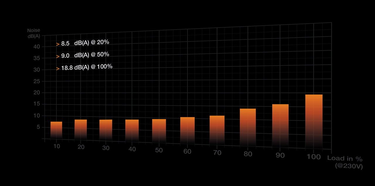Dark Power 13 750W имеет сертификат 80 PLUS® Titanium с эффективностью преобразования энергии до 95,8%, что обеспечивает множество преимуществ для вашей системы, включая меньшую потребляемую мощность, пониженный уровень нагрева и более тихую работу. Уровень потребления энергии в режиме «Ожидания» (Standby) составляет менее 0.1 Вт.