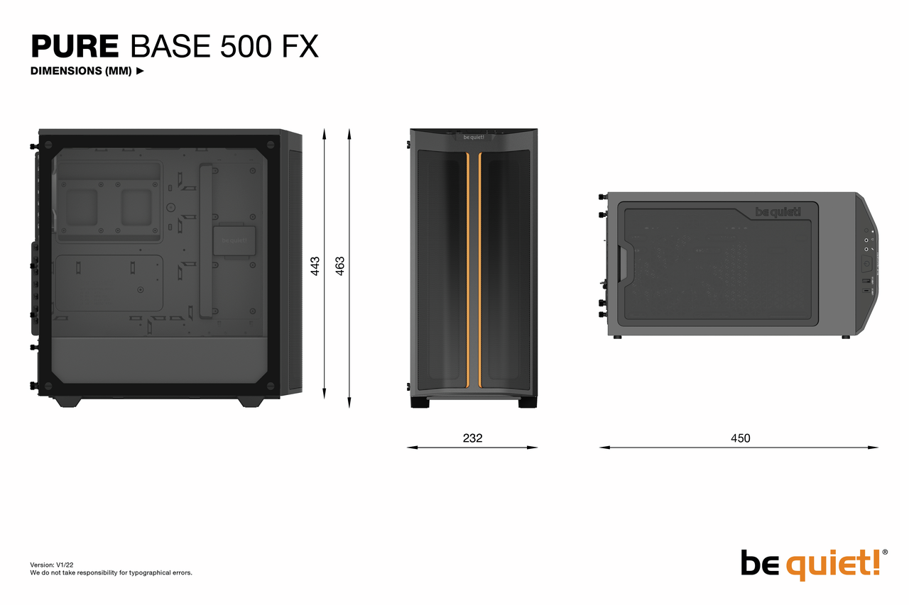 Pure Base 500 FX Black 的充裕空間可安裝高階顯示卡和最高至190mm 的大型散熱器。風扇或最長達360mm 的水冷散熱器可輕鬆安裝在前方。頂部可提供空間給更多風扇或最長達240mm 的水冷散熱器。
