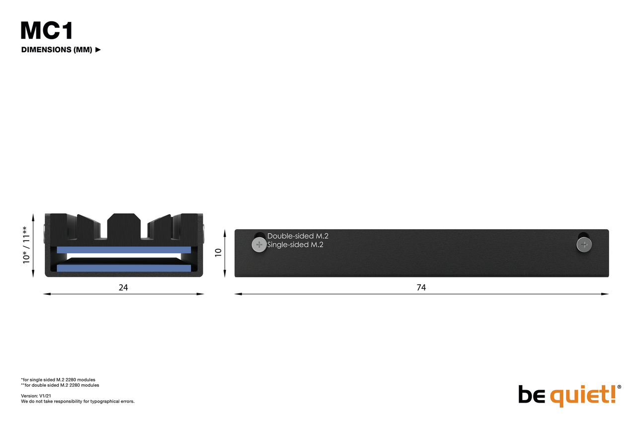 З метою скорочення часу завантаження і збільшення обсягу пам'яті в Sony PlayStation® 5 може бути встановлений твердотільний накопичувач M.2 SSD. Завдяки ідеальним розмірами be quiet! MC1 чудово підходить для його охолодження.