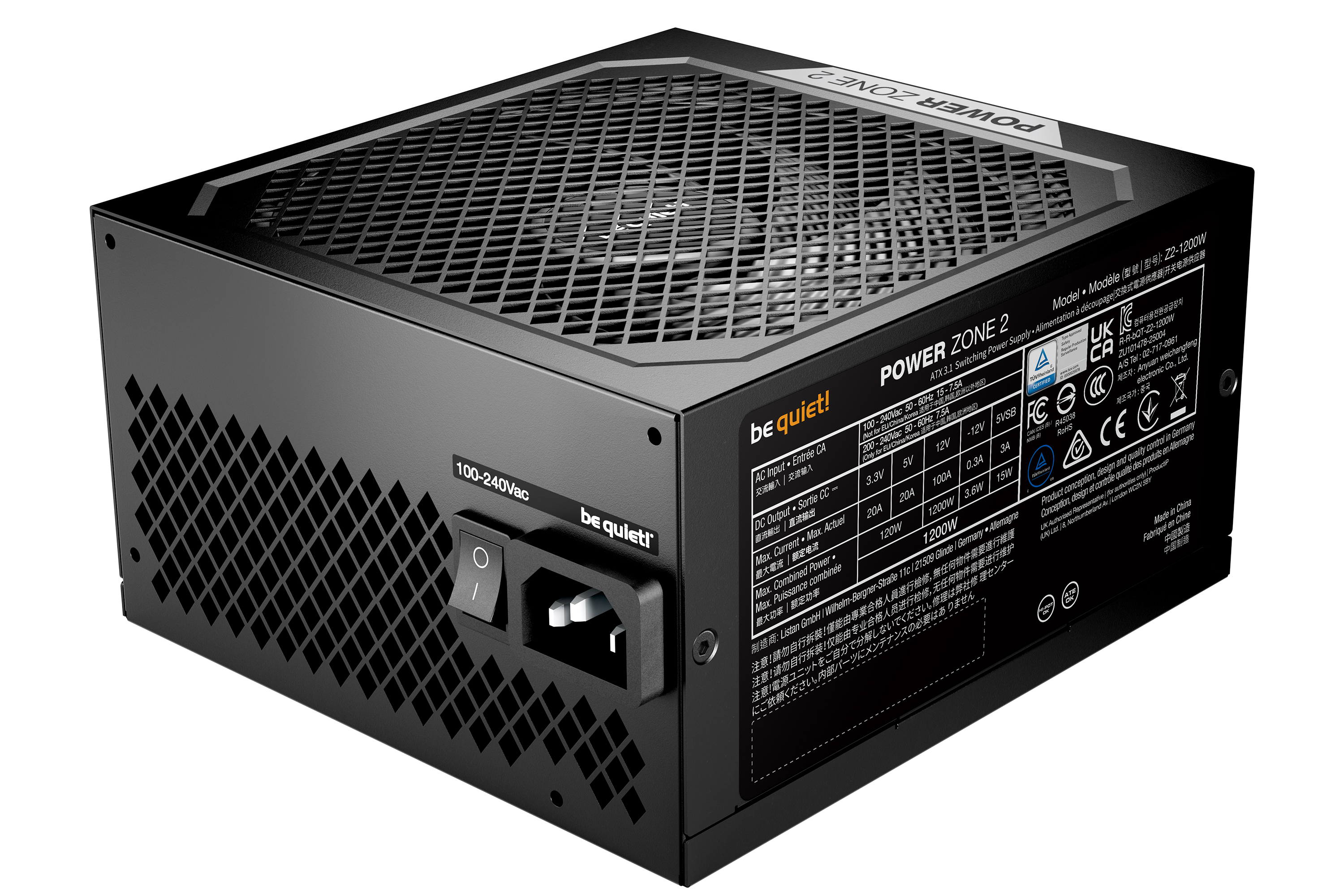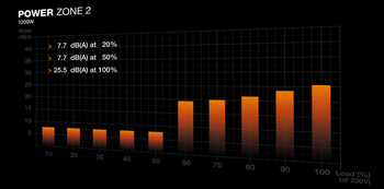 Великий вентилятор Pure Wings 3 140mm забезпечує надійне охолодження Power Zone 2 1200W. Під час низького навантаження системи вентилятор повністю вимикається допоки компоненти не потребуватимуть охолодження при збільшенні навантаження. При зниженні навантаження вентилятор працює ще протягом 2-5 хвилин, щоб уникнути частих і дратівливих запусків і зупинок. У поєднанні з великим розміром вентилятора для активного охолодження цей блок живлення є надзвичайно тихим за будь-яких сценаріїв навантаження.